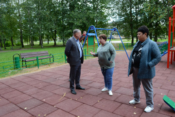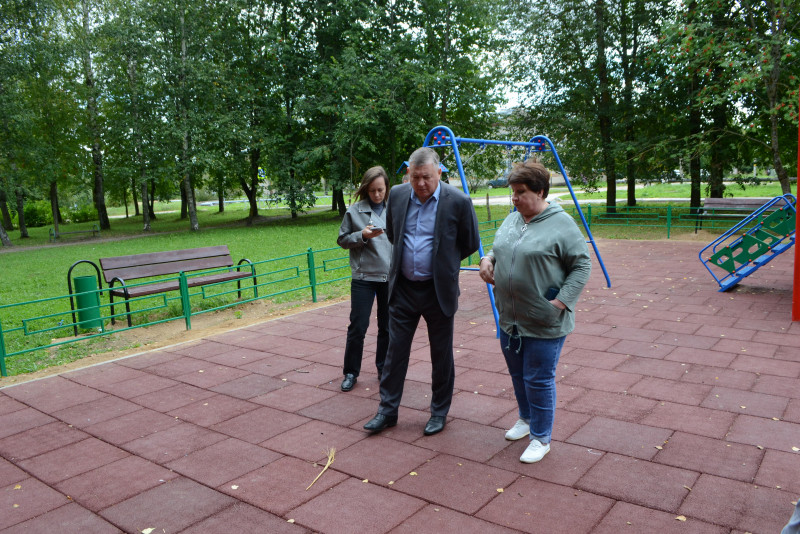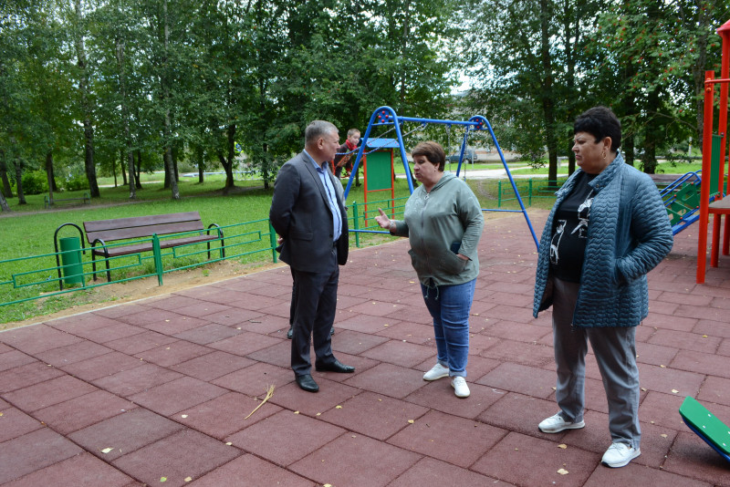 - Глава округа А. В. Голуб проверил благоустройство детской площадки в деревне Плоское.