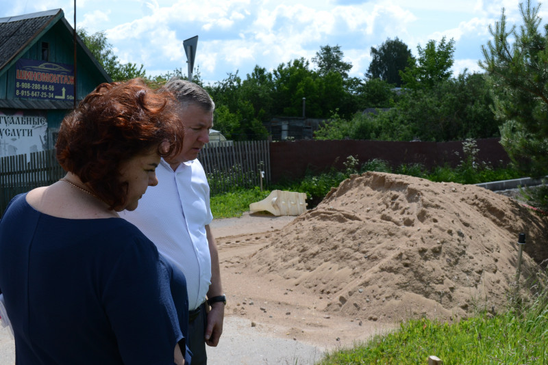 Глава Починковского округа А.В. Голуб проинспектировал ремонтные работы по 1-му Советскому переулку в Починке