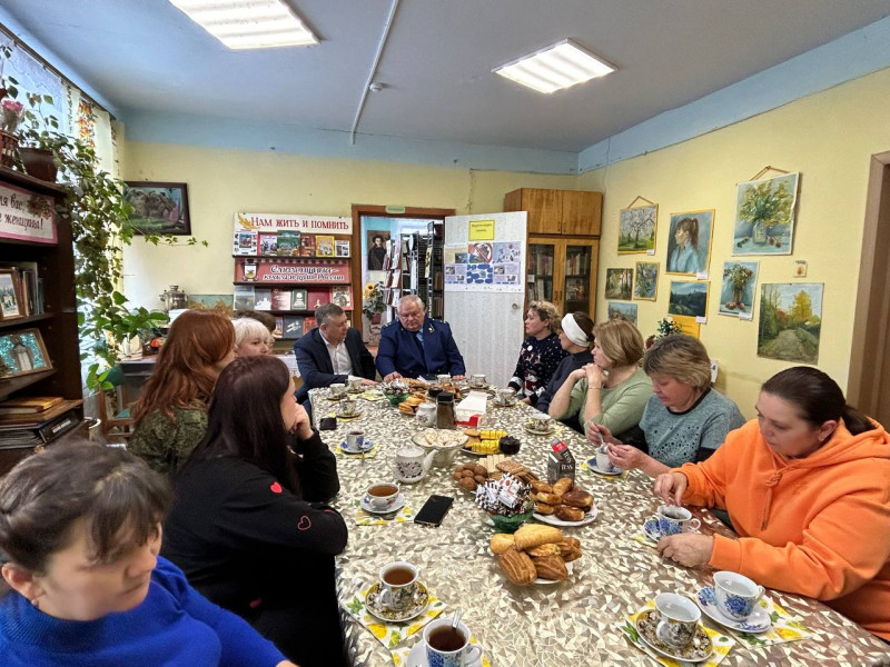 Накануне Международного женского дня в д. Шаталово состоялась встреча Главы Починковского муниципального округа Александра Владимировича Голуба с женами и матерями починковцев – участников специальной военной операции.