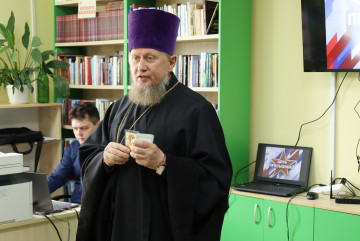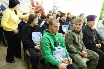 Настоятель храма Благовещения Пресвятой Богородицы протоиерей Николай Бондар обратился к будущим защитникам Отечества с духовными наставлениями. Каждому призывнику он подарил иконку.